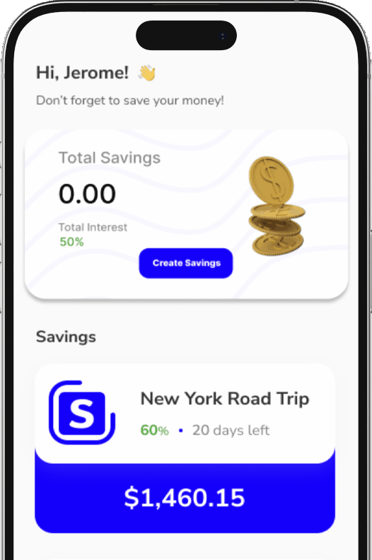 Save Daily, Weekly or Monthly and get high Interest on your Savings, Interests are paid daily. Create your Joint Wallet and save with your friends and family easily. Lets build together!